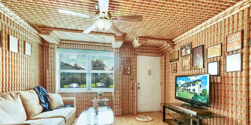 Esta casa excêntrica dos Estados Unidos, era de um fã de longa data da Budweiser que tinha por missão cobrir todas as paredes de sua casa com latas da marca.