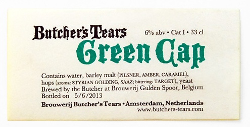 A Butcher’s Tears refere-se à Green Cap como sendo a pale ale original de Amesterdão. Não sei dizer se é um facto histórico ou apenas uma afirmação ousada de marketing, mas vou acreditar na palavra deles.